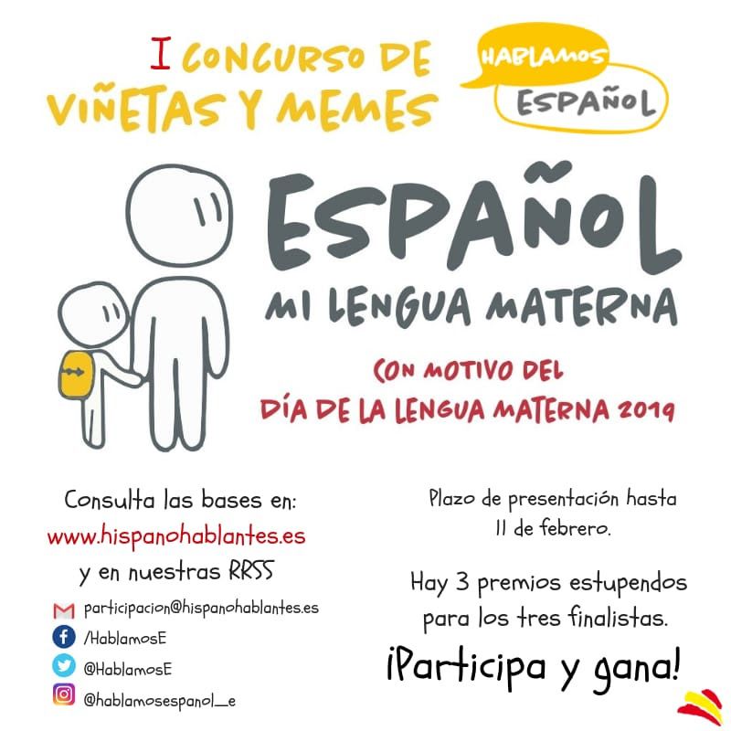 2- La temática de las viñetas/memes debe referirse al título del concurso: “Español, mi lengua materna”. Deberá incluir una frase en las que se transmita el valor que para el concursante tiene el español, siendo esta su lengua materna. La creación se completará con una imagen original: foto, dibujo, montaje… que refuerce el mensaje del texto.