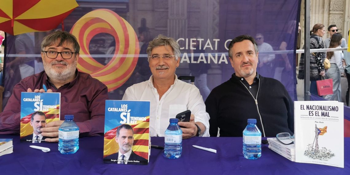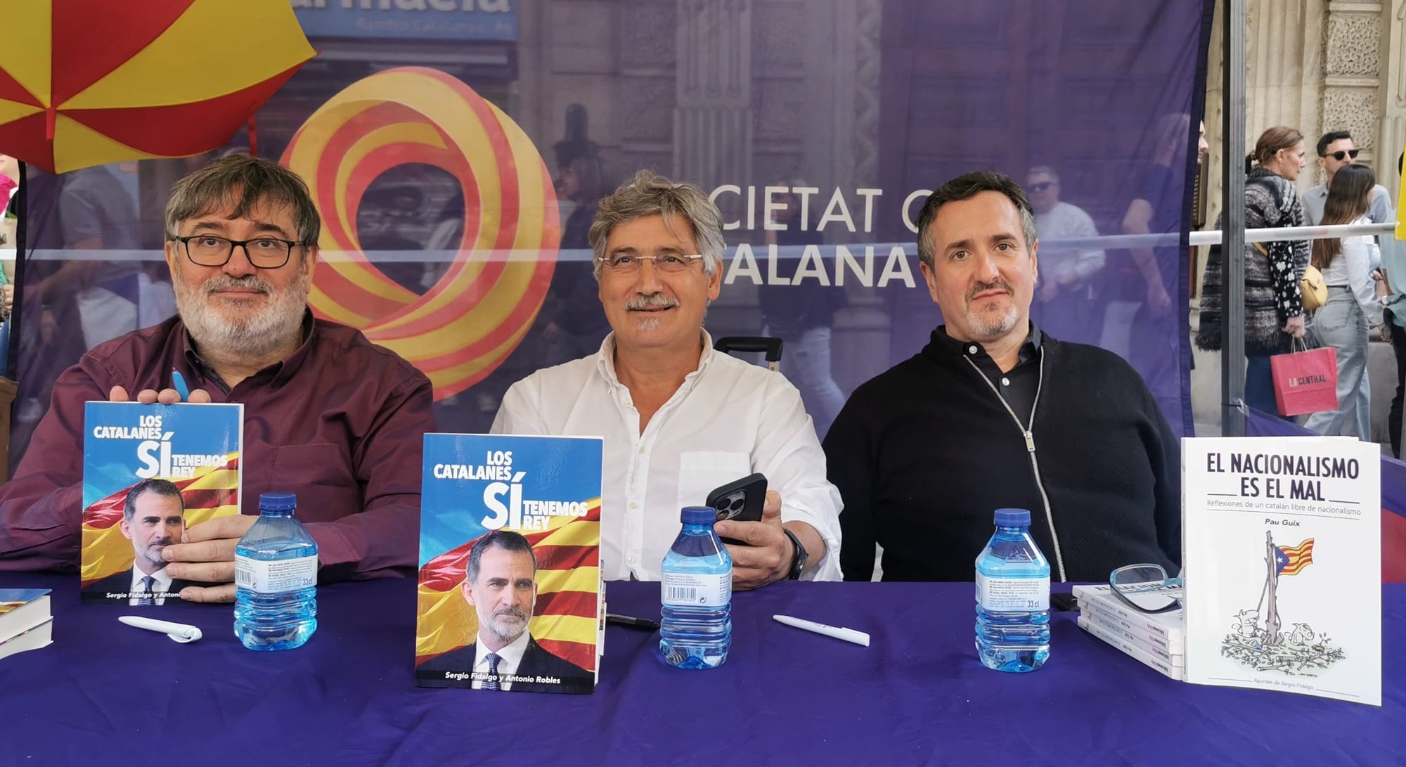 En este Sant Jordi firmaron por parte de Hildy los siguientes autores: Joan Ferran y su vetada por la Generalitat ‘El brazo friki del procés’ (PSC, y SCC); Pau Guix y su ‘El nacionalismo es el mal’ (SCC, Impulso Ciudadano/AEB/S’Ha Acabat!, ANT y PP) y Antonio Robles y servidor con ‘Los catalanes SÍ tenemos Rey’ en las carpas de SCC, Impulso, PP, VOX y ANT. Fuimos donde nos invitaron. Donde no fuimos, es porque prefirieron que no estuviéramos. En todos los sitios nos trataron bien, los que atendían las carpas y los visitantes fueron amables y disfrutamos de una bonita jornada. Salvo algún grito de «feixisteeee» aislado.