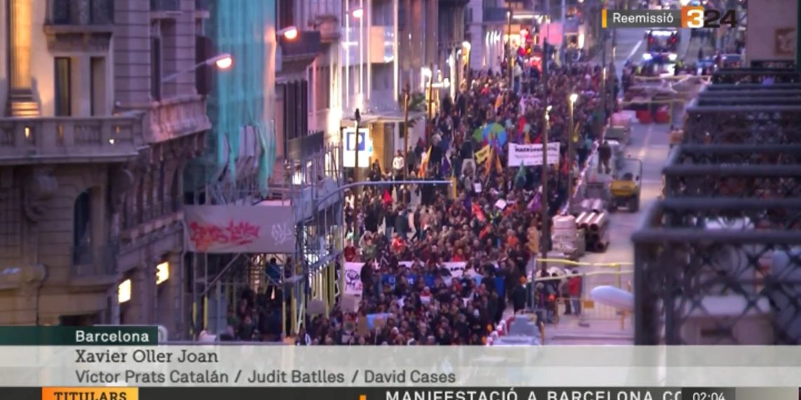 Representantes de entidades tan ‘multitudinarias’ como «Stop Jocs Olímpics» o «Plataforma no més blocs» abrieron los informativos de TV3 durante todo el sábado para vender que una manifestación que dudo mucho que llegara ni a cinco mil personas representaba la voluntad de un pueblo catalán que no quiere ni la ampliación del aeropuerto de El Prat, ni el cuarto cinturón, ni cualquier otra infraestructura que moleste a dos patos y a cuatro pijos separatistas.