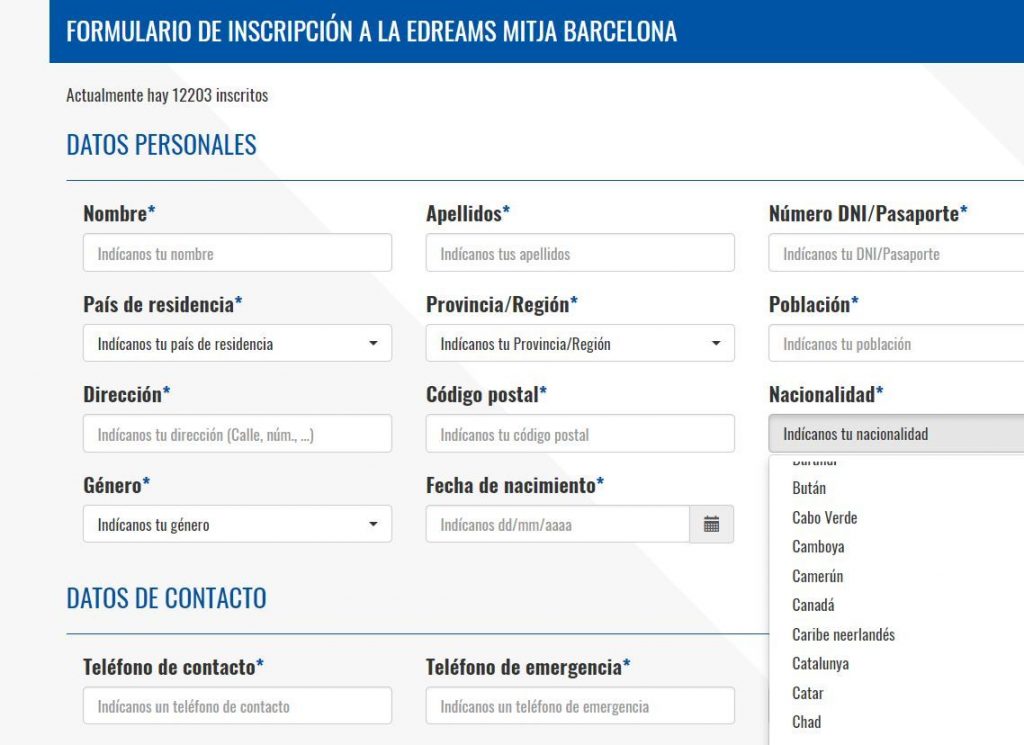 La web de la Media Maratón de Barcelona 2019 distingue, en el formulario de inscripción de los corredores, entre nacionalidad catalana y española. Esta carrera se disputa el 10 de febrero por las calles de Barcelona.