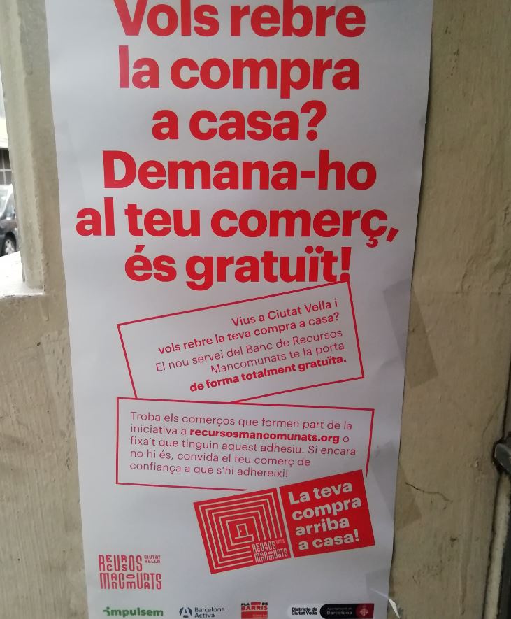 Esta campaña informa que los vecinos que deseen que les lleven gratuitamente a sus domicilios su compra pueden conseguir este servicio en los comercios del distrito adheridos a este programa. También se incita a los clientes de otras tiendas a sugerir a sus propietarios que se adhieran. Pero solo lo hacen en catalán, ignorando al castellano, la lengua más hablada y usada en Cataluña.