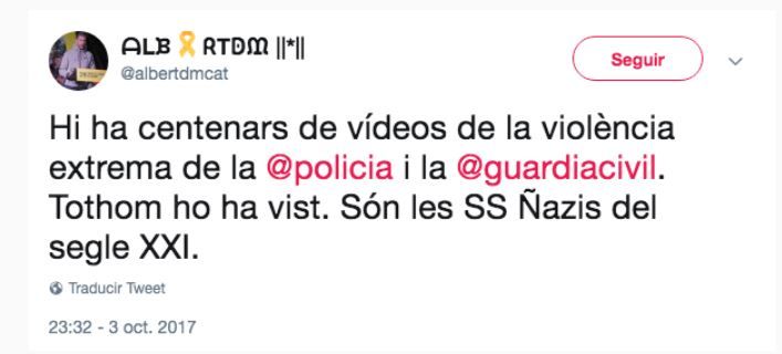 También llamó «nazis» a agentes de la Policía Nacional y la Guardia Civil, pero la justicia archivó en primera instancia la causa abierta por posible delito de odio.