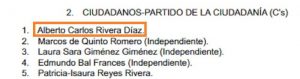 Así podemos comprobar como el candidato se pasa a llamar Alberto Carlos Rivera Díaz, algo que ha despertado muchas críticas y sornas en las redes sociales para el líder y candidato a la presidencia del gobierno de Ciudadanos.