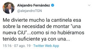 El presidente del Partido Popular en Cataluña, Alejandro Fernández, ha recibido con fina ironía la aparición de esta nueva formación política que pretende ocupar el espacio dejado por los convergentes.
