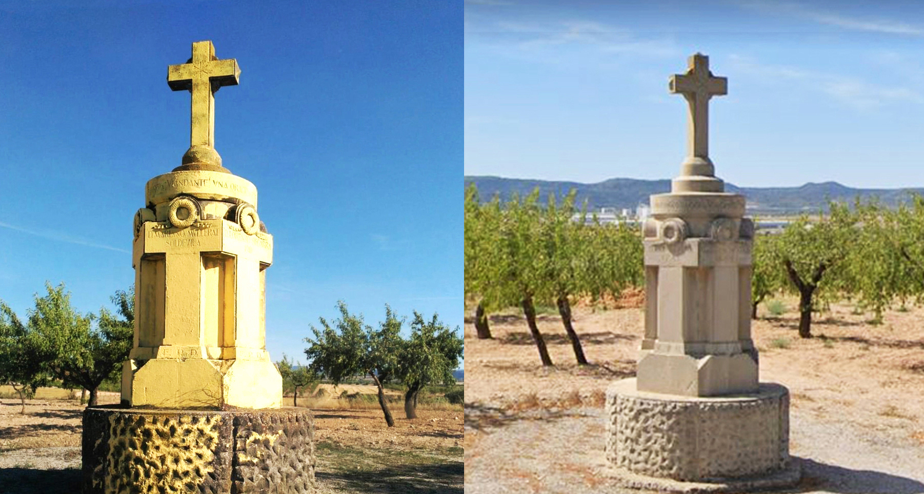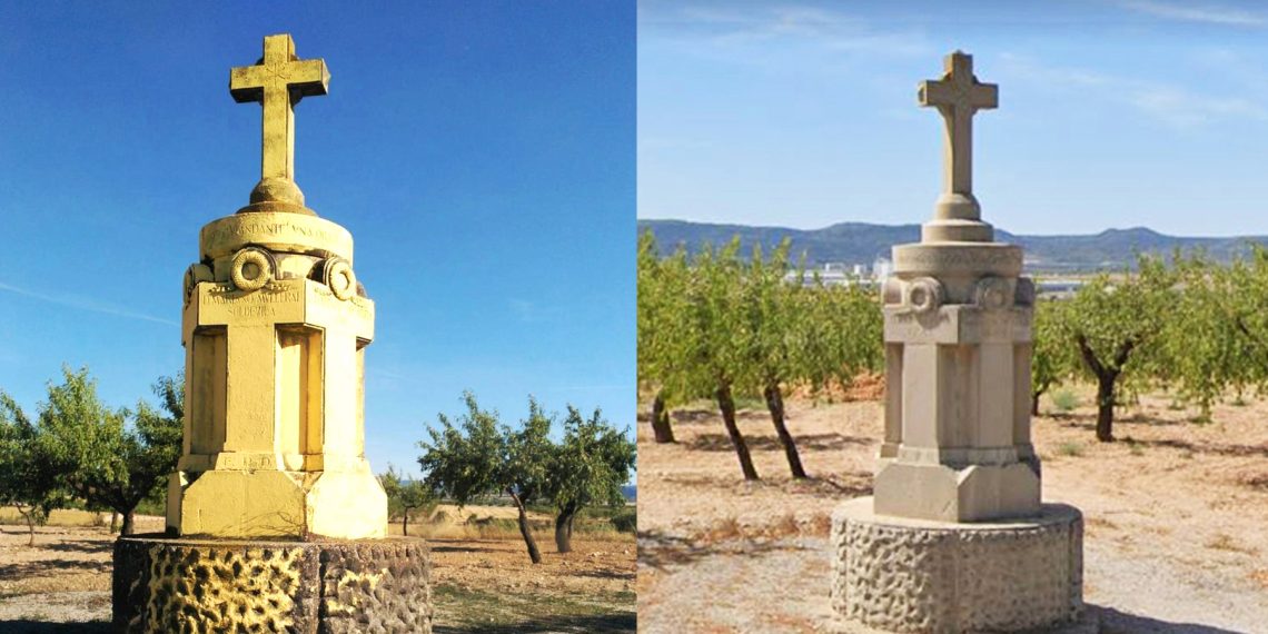 En julio del año 2018 (en plena vorágine lazi-secesionista en la que algunos se dedicaban a pintarlo todo impunemente de amarillo) unos desconocidos pintaron el monumento mencionado (ubicado en una finca privada) de color amarillo, mostrando una falta total de respeto a los muertos, hecho que diversos familiares de las victimas denunciarían ante los Mossos d’Esquadra, sin que se supiera más sobre el asunto. Teniendo que ocuparse las familias de su posterior limpieza. En dicho monumento además del nombre de las seis víctimas, hay una inscripción grabada en la piedra que dice “una oración por los que aquí fueron inmolados por Dios y por España”.