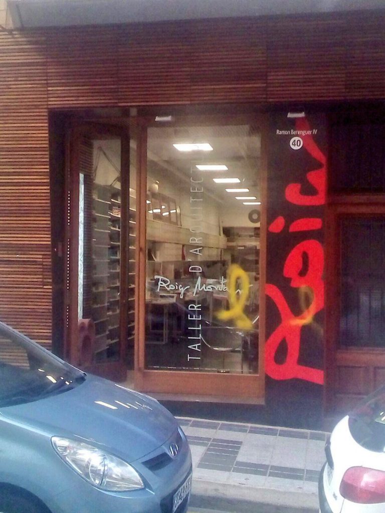 Su taller de arquitectura ha sido vandalizado por otros violentos desconocidos. Sin duda, han sido unas jornadas de mucha actividad para los más radicales.