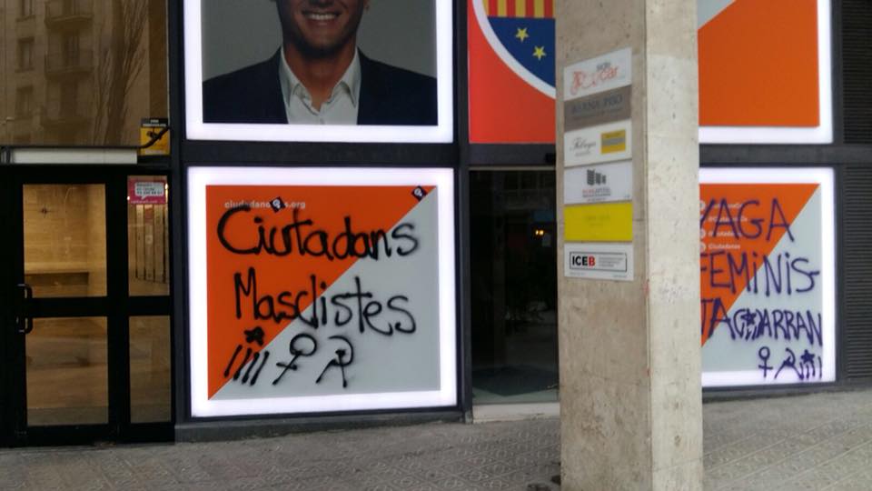 Ayer las jóvenes de Arran llevaron a cabo un escrache a las puertas de la sede de Ciudadanos en Barcelona, y esta noche han pintado la fachada de la sede de la formación naranja en Barcelona. Es un nuevo ataque que sufre el partido liderado por Albert Rivera por los radicales separatistas.