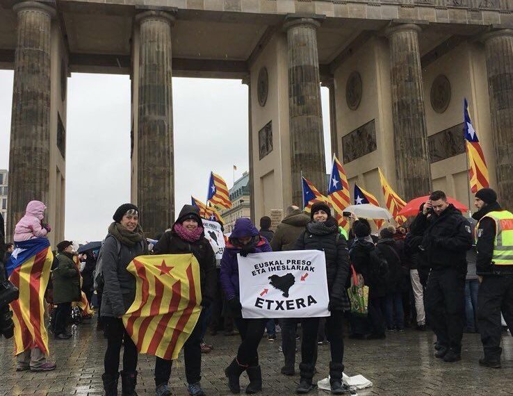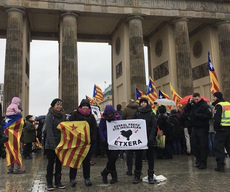 La manifestación comenzó sobre las 12.00 horas en la Puerta de Brandenburgo y recorrió el centro de la capital alemana hasta la sede del Ministerio de Justicia bajo el lema «Por una solución política: libertad presos políticos catalanes».