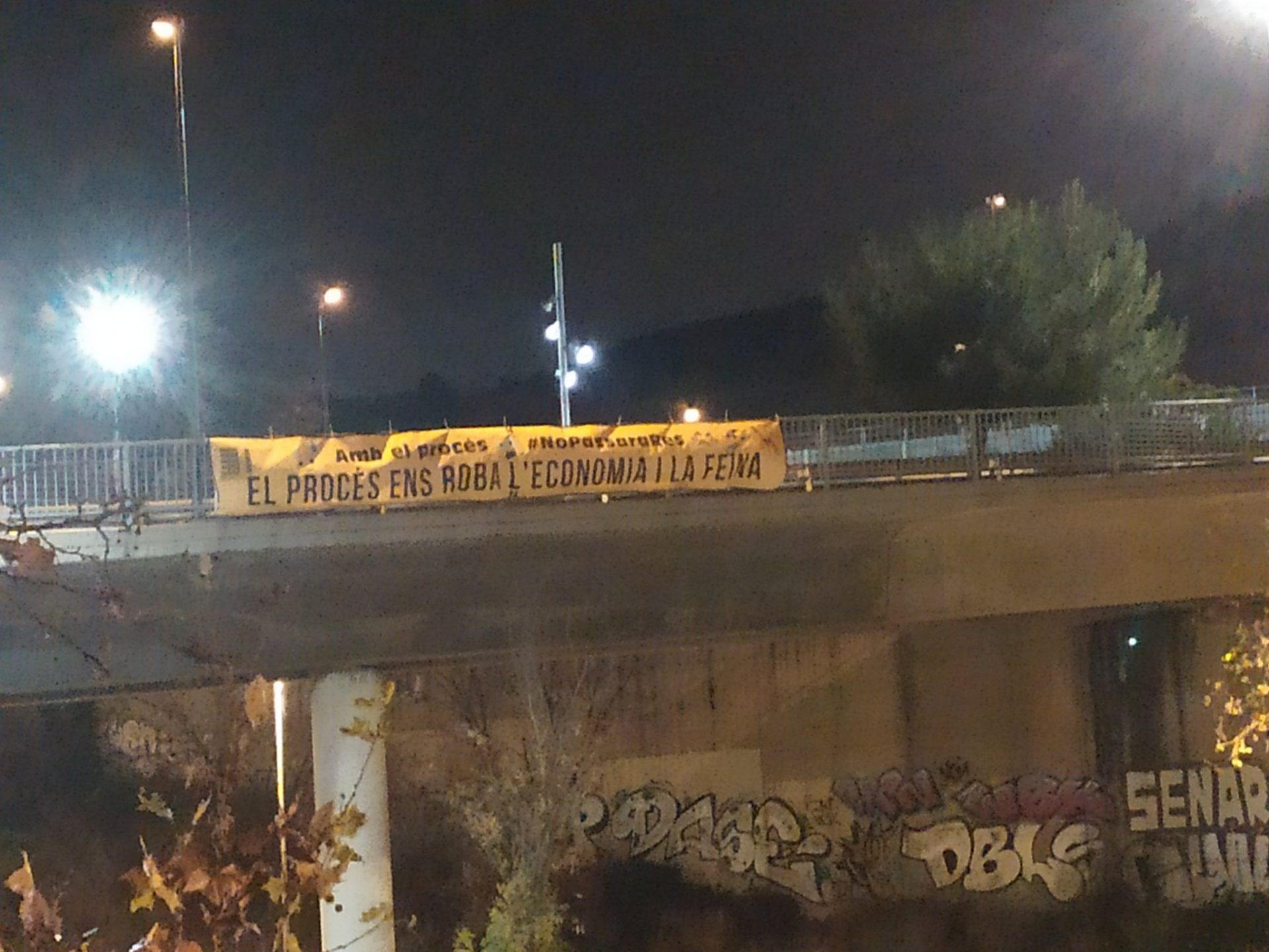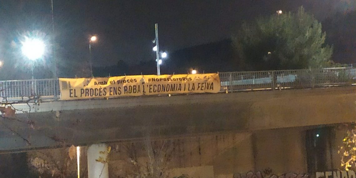 Lo hemos podido ver en las redes sociales de Societat Civil Catalana. En dichas pancartas se puede leer «El proceso nos roba la economía y el trabajo«, sin lugar a dudas un buen resumen de lo que significa el proceso independentista. Esta iniciativa la ha promovido esta entidad.