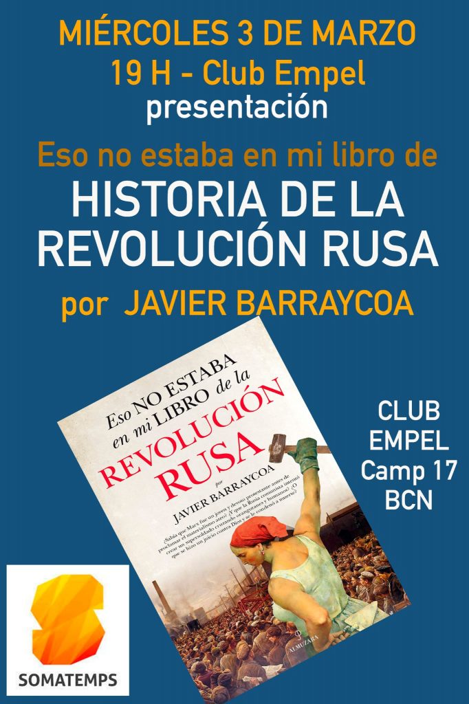 El escritor Javier Barraycoa presenta el próximo miércoles 3 de marzo su último libro, ‘Eso no estaba en mi libro de Historia de la Revolución Rusa’ (Editorial Almuzara), en un acto organizado por la asociación Somatemps.