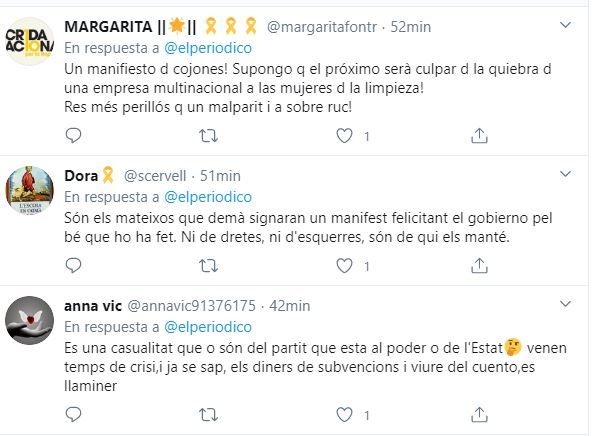Este manifiesto ha generado una auténtica cacería en redes sociales por parte, principalmente, de activistas secesionistas, contra los firmantes del mismo, a los que han atacado por criticar al Govern.