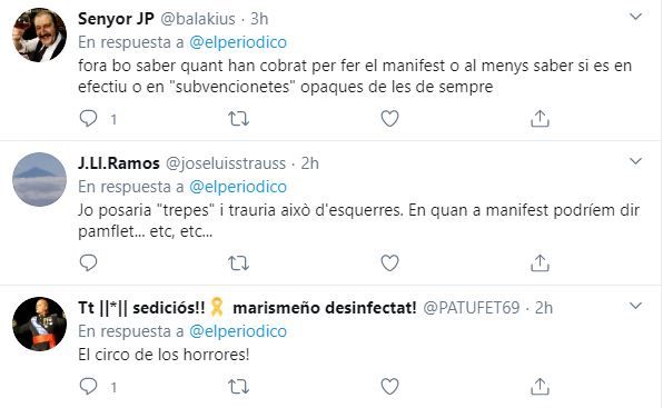 A raíz de la publicación de la información sobre el manifiesto en la edición digital de ‘El Periódico de Catalunya’ los mensajes de ataque han sido legión.