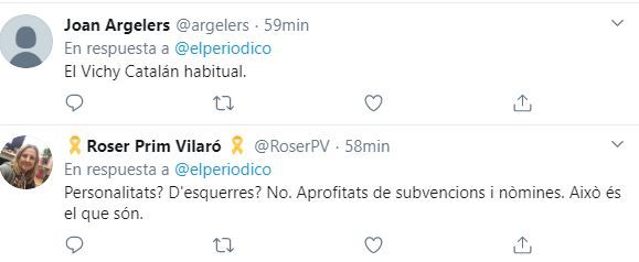 Las acusaciones llegan a comparar a los firmantes con los colaboracionistas franceses del Régimen de Vichy, ya que los denominan «el Vichy catalán habitual».