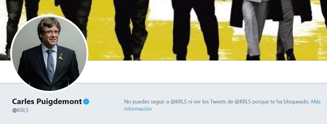 El ex presidente de la Generalitat, el ex honorable y actual prófugo huído de la Justicia española Carles Puigdemont, ha bloqueado a la cuenta oficial de elCatalán.es en la red social Twitter.