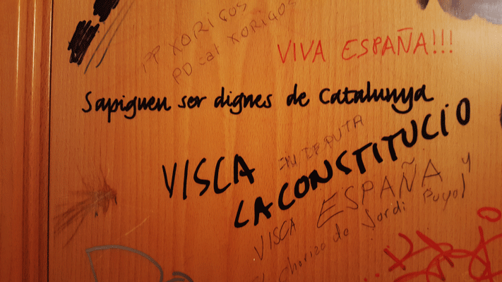 El portal humorístico Charnego news, una referencia en la crítica irónica al nacionalismo publica una interesante reflexión titulada «En Cataluña, ya sólo se puede defender la Constitución en los retretes», y que tiene como tesis «y a los que más tuvimos que correr delante de los grises, ahora nos llaman franquistas» en referencia a los carteles con la efigie de Francisco Franco enganchados en diversos lugares de Cataluña para apoyar la consulta ilegal del 1 de octubre.