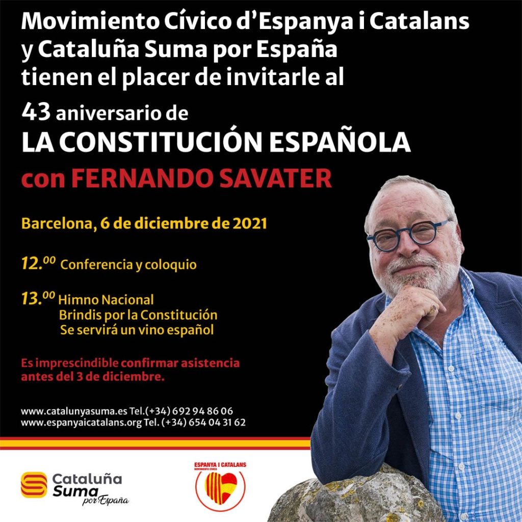 Como no podía ser de otro modo, la convocatoria de una entidad tan representativa como es Espanya i Catalans sigue sumando a nuestro elenco de conferenciantes personas de primer nivel y, en esta ocasión, el invitado será el Sr. Fernando Savater, que nos hablará de nuestra Constitución, su vigencia y los valores que emanan de ella.