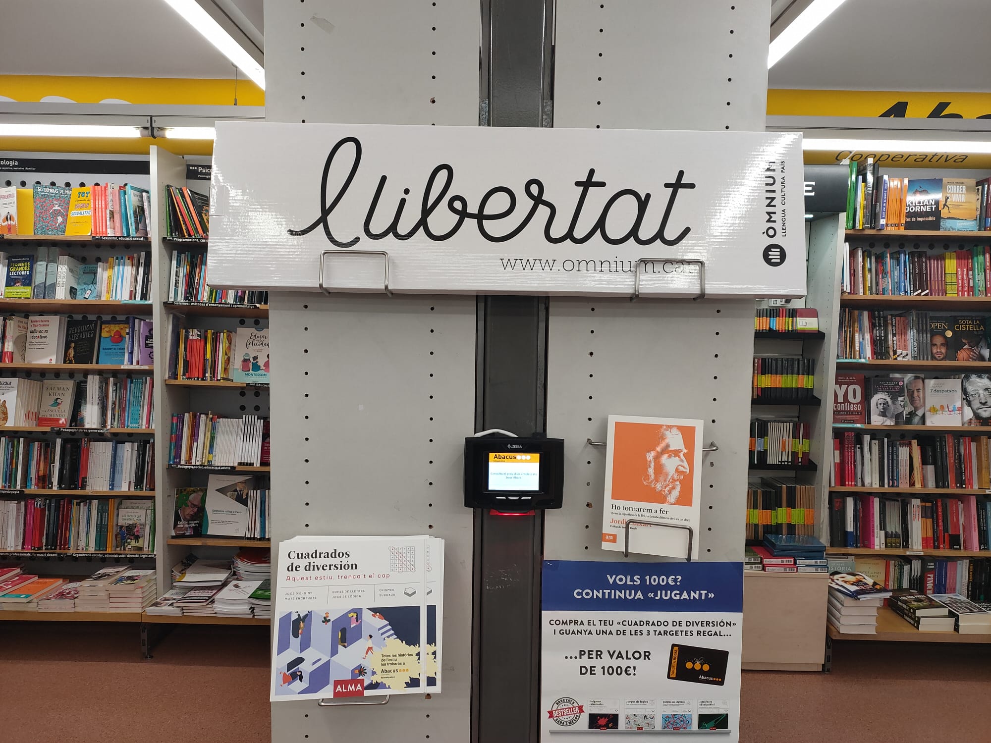 Este domingo, 28 de diciembre, en medio de la tienda, sin venir a cuento, había un cartel de notable tamaño de Òmnium Cultural con el lema «libertad».