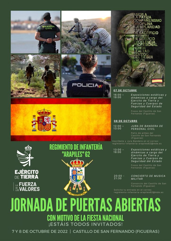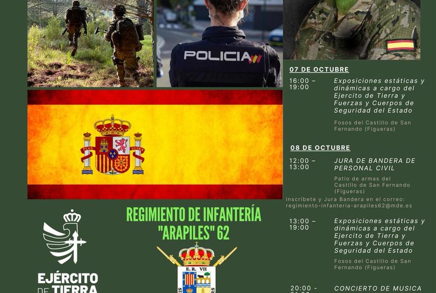 Ambos actos forman parte de las jornadas de puertas abiertas de dicho recinto militar con motivo de la Fiesta Nacional, y también incluyen exposiciones estáticas y dinámicas, tal y cómo se detalla en el cartel adjunto.