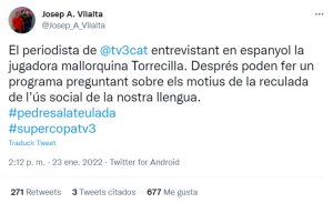 Esta jugadora es natural de las Islas Baleares, y al acabar el partido fue entrevistada en TV3, y lo hicieron en castellano, lo que ha despertado las críticas de los hiperventilados separatistas.