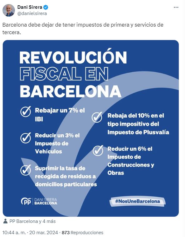 Este dirigente popular asegura que «Barcelona debe dejar de tener impuestos de primera y servicios de tercera», denunciando así la mala gestión del equipo de gobierno que preside el socialista Jaume Collboni, que no ha sabido revertir la degradación económica y social que dejó Ada Colau tras ocho años de alcaldesa, muchos de ellos con los socialistas como socios de gobierno.