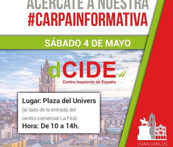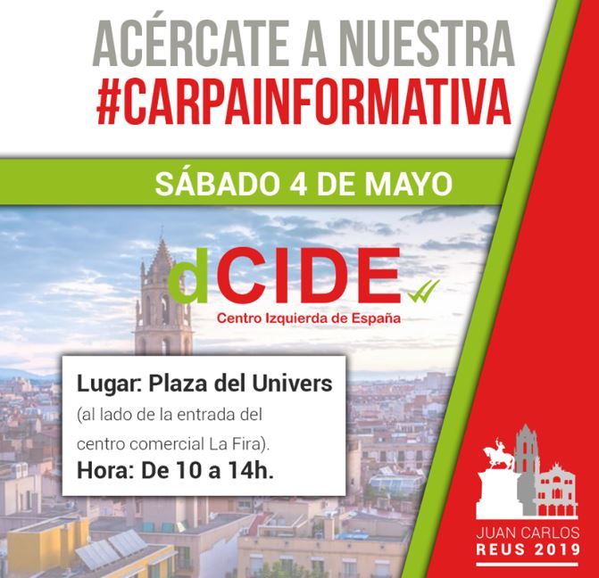 El partido dCIDE instalará el sábado 4 de mayo una carpa en la localidad de Reus para atender a sus simpatizantes e informar sobre la candidatura que presenta al ayuntamiento de esta localidad.