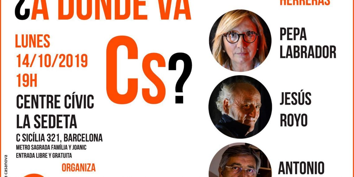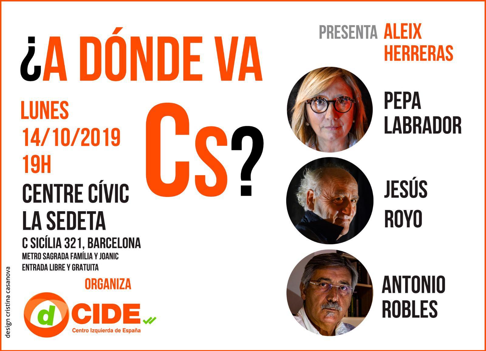Los ponentes serán el ex diputado de Cs en el Parlament, y portavoz de dCIDE, Antonio Robles; Pepa Labrador y Jesús Royo.