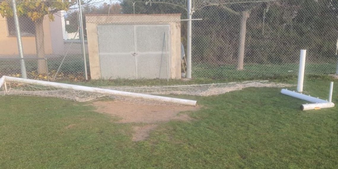El portal de la asociación ‘Somatemps’ ha publicado fotos en las que se ve como un grupo de desconocidos ha cortado las porterías del campo de fútbol de dicho equipo, y han dejado como recuerdo unos adhesivos con la bandera de España.