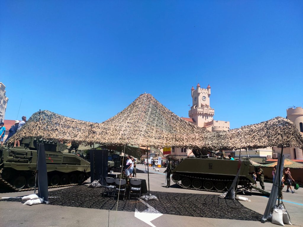 Tras ser atendido de manera inmejorable por el servicio de prensa de la Inspección General del Ejército, comencé a deambular por los diferentes espacios que estaban habilitados para los visitantes. No faltó la fotografía familiar emotiva junto a la placa de los caídos por España, situada en un monolito al pie de la bandera nacional, ni la visita a la exposición de libros militares tras reponer fuerzas en una de las cantinas, con precios populares.