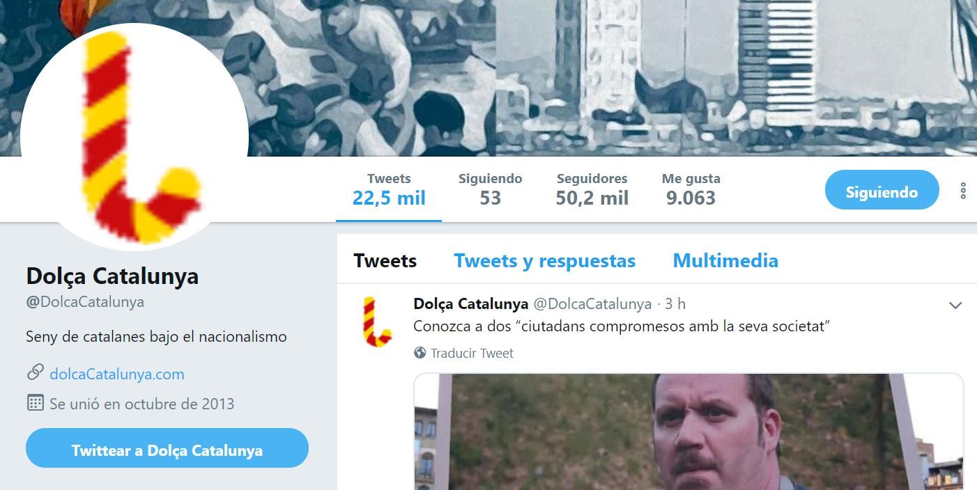 El blog libre de nacionalismo Dolça Catalunya acaba de superar los 50.000 seguidores en la red social Twitter.