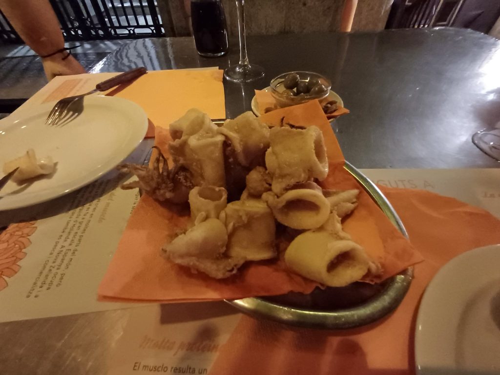 Pero los que tienen, por ejemplo, salsa roquefort también son destacables. Se sirven en una cazuela más que generosa, aunque algunas especialidades se pueden tomar como tapa, por ejemplo a la vinagreta, mayonesa o alioli. También tienen raciones para compartir, como unos más que sabrosos calamares fritos. Las cazuelas se sirven acompañadas de una modesta, pero sabrosa, ración de patatas fritas.