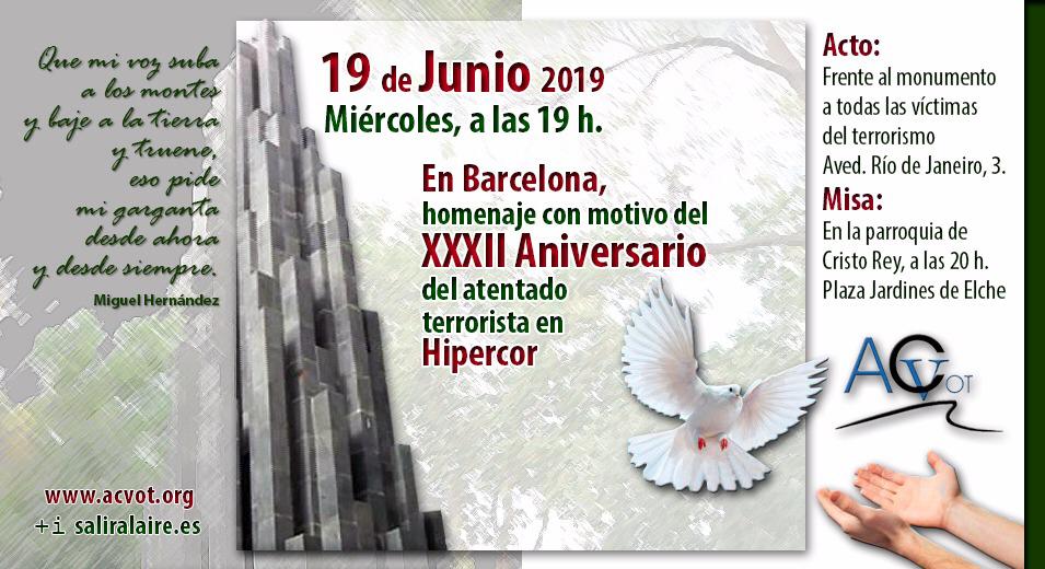 El próximo 19 de junio Barcelona acogerá un homenaje a las víctimas del salvaje atentado de la banda terrorista ETA contra Hipercor, en su 32º aniversario.