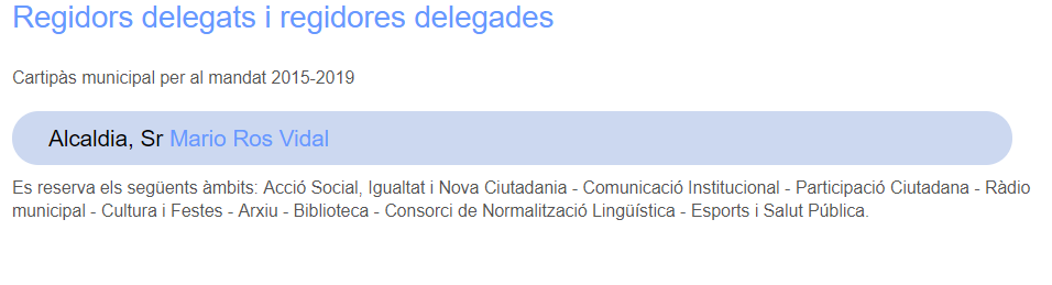 Según la web municipal el ámbito de cultura y fiestas recae en el alcalde, el socialista Mario Ros.