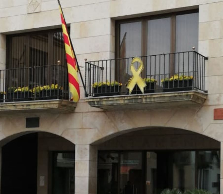 El Ayuntamiento de la localidad barcelonesa de Calella ha desafiado a la Junta Electoral y mantiene en su fachada un lazo amarillo.