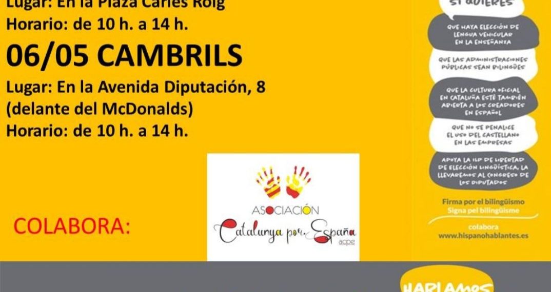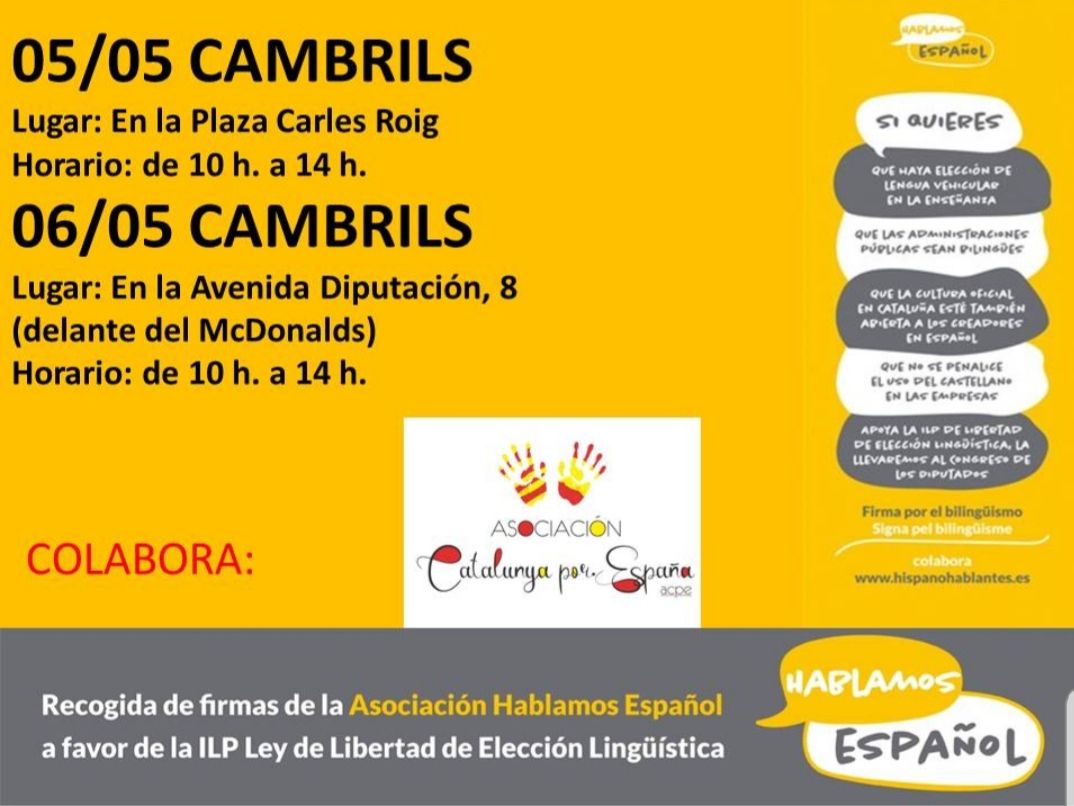 Estaba previsto que la Asociación Hablamos español recogiera este fin de semana firmas en Cambrils para su ILP en defensa de la libertad de elección de lengua en la educación.
