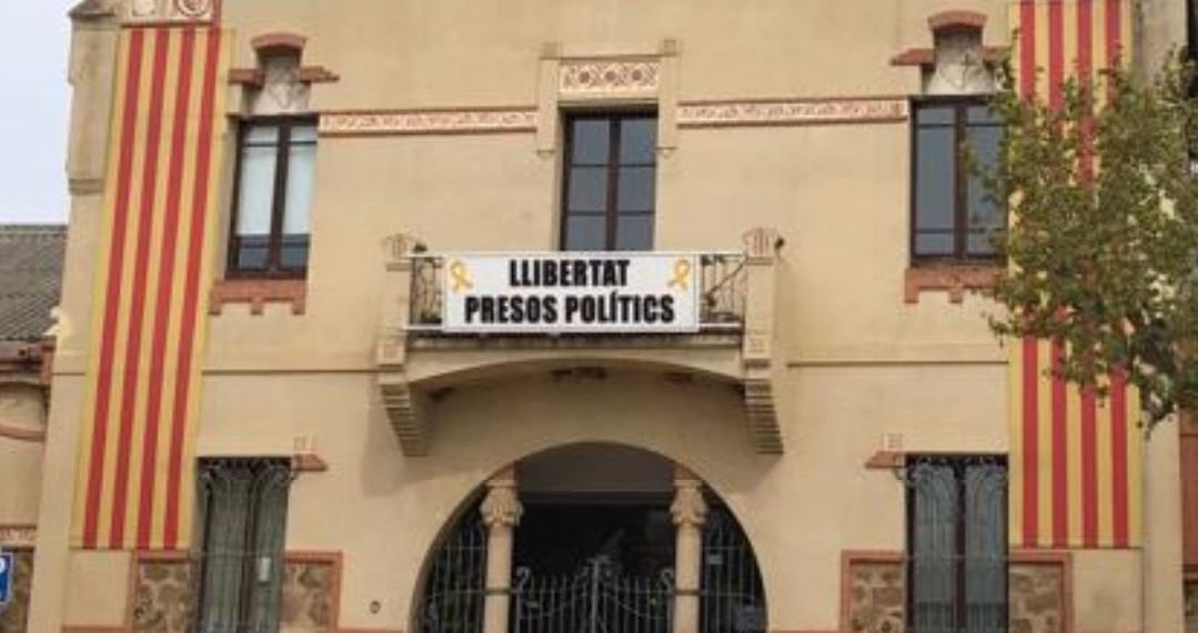 El Ayuntamiento de la localidad barcelonesa de L’Ametlla del Vallès ha desafiado a la Junta Electoral y mantiene en su fachada una pancarta con lazos amarillos y con el mensaje «Libertad presos políticos».