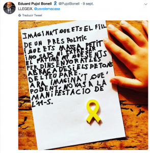 El diputado separatista ha publicado en su cuenta de twitter una imagen que simula ser una carta escrita por un niño pequeño donde pide “imagínate que eres el hijo de un preso político”.
