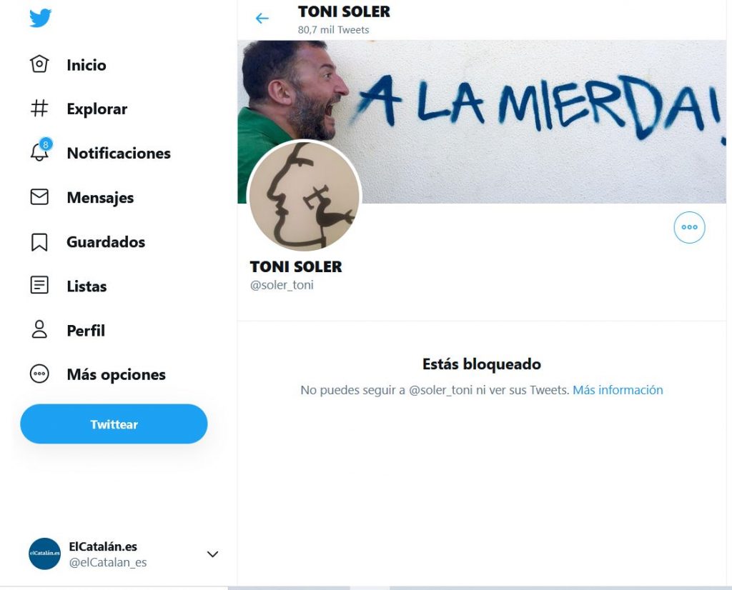 El ‘dúo maravillas’ de TV3, Toni Soler y Jair Domínguez, que tienen en redes sociales un buen número de tuits ofensivos contra líderes constitucionalistas, han bloqueado en Twitter a elCatalán.es. Ambos son copresentadores del programa de la televisión autonómica catalana ‘Està passant’, que es producido por la empresa de Soler, Minòria Absoluta.