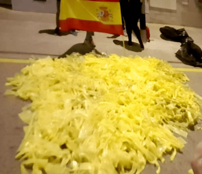 Durante la madrugada del 19 al 20 de marzo la brigada de limpieza Cruzada de los 300 salió a retirar lazos amarillos las localidades de Alió y Puigpelat (Alto Campo), en la provincia de Tarragona.