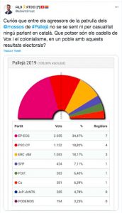La última de Albert Donaire ha sido relacionar el castellano y la delincuencia. «Curioso que entre los agresores de la patrulla de los Mossos de Pallejà no se escucha ni por casualidad nadie hablando en catalán. ¿Acaso son los cachorros de Vox y el colonialismo, en un pueblo con estos resultados electorales?«, ha sentenciado este separatista en sus redes sociales.