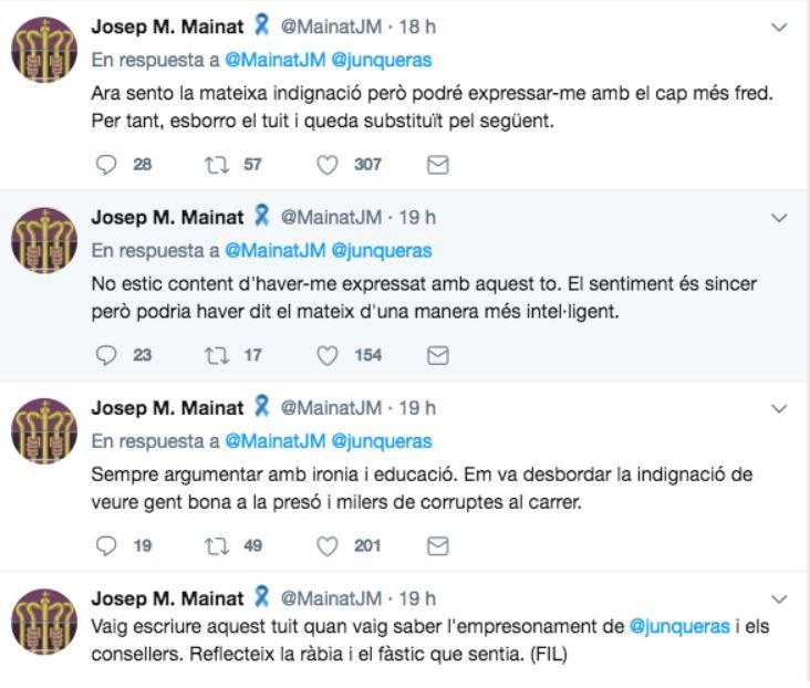 En noviembre de 2017 colgó en Twitter un mensaje en el que decía «me cago en el Reino de España, en su justicia y su puto Borbón», que borró rápidamente y que justificó por la «indignación» que le supuso la detención de Oriol Junqueras y otros líderes secesionistas.
