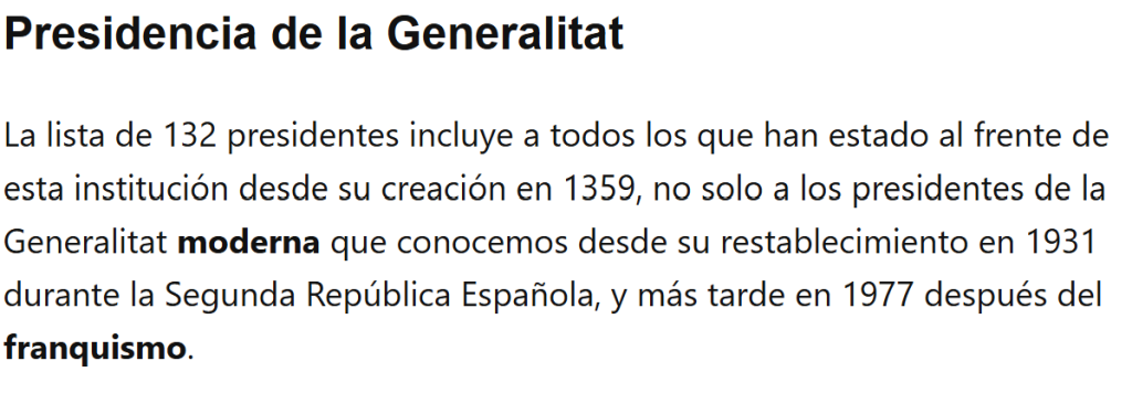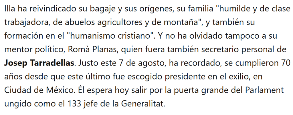 Esto es lo que el separatismo catalán está haciendo desde siempre, reescribir la historia y ojalá ‘El Periódico’ se dedique a denunciarlo con esa rotundidad, Cuando en los libros de texto vende una «corona catalano-aragonesa» que nunca existió o cuando Salvador Illa se reivindica en la foto oficial de su perfil como «133º president» está falsificando la historia. El problema es que la Generalitat no tuvo 132 presidentes antes de Illa porque la Generalitat que existió en tiempos medievales nada tiene que ver con la actual institución nacida con la Transición, y que fue una reedición de la que ya existió en la 2ª República.