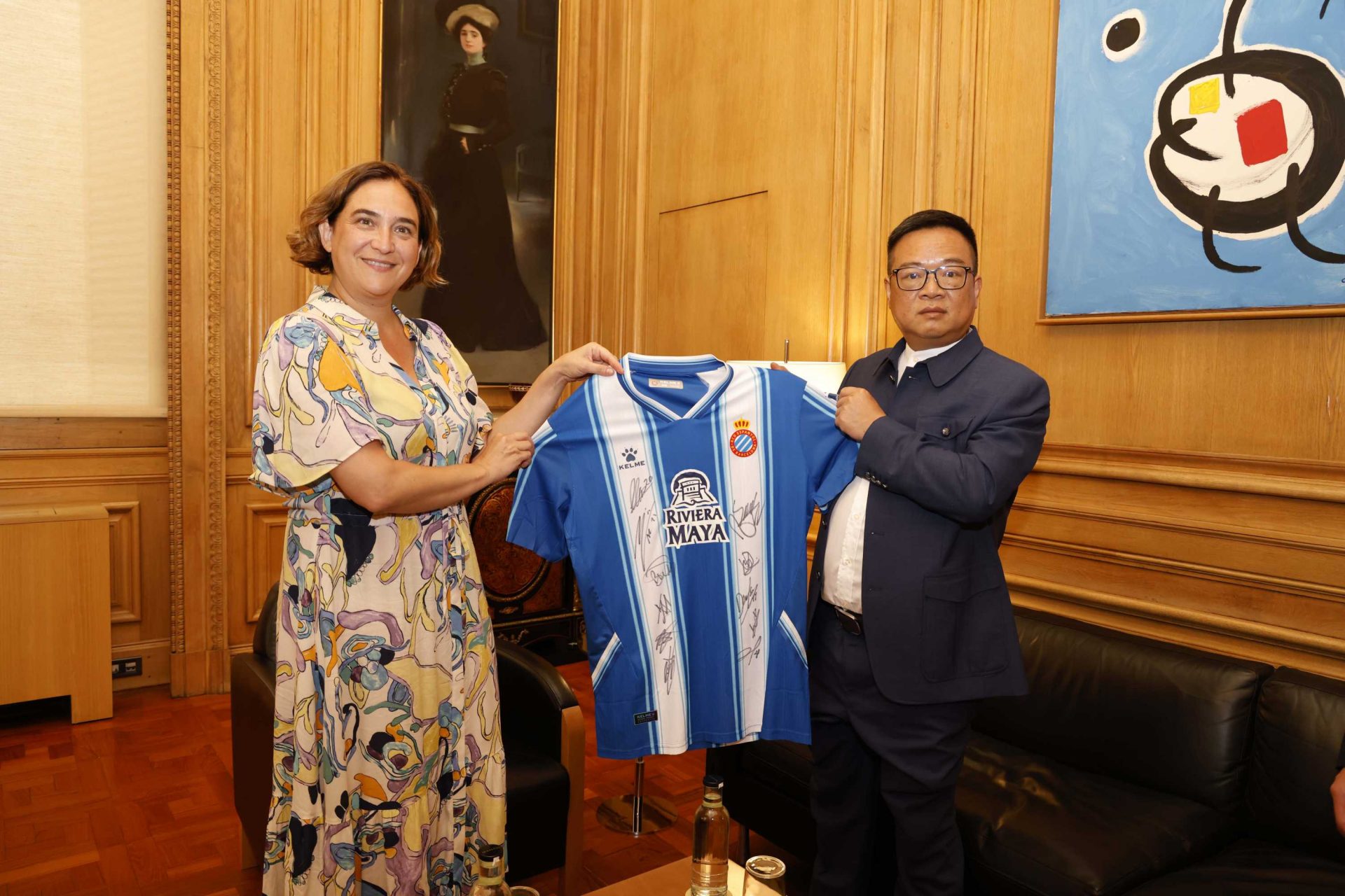 El presidente perico rinde pleitesía a la alcaldesa de Barcelona, justo el día después que el gobierno municipal ha dejado tirados a los aficionados blanquiazules que acudieron al partido contra el Real Madrid. Recordemos que TMB se negó a ampliar su horario del metro para facilitar la vuelta a casa de los hinchas pericos y madridistas que acudieron al choque del pasado domingo.