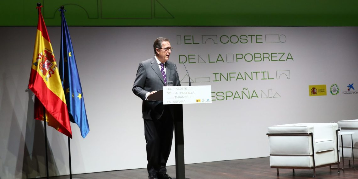 En el acto, celebrado en el auditorio de CaixaForum de Madrid, el presidente del Gobierno, Pedro Sánchez, ha remarcado que la pobreza infantil cuesta más de 63.000 millones de euros al año, el 5,1% del PIB anual en cifras de 2019 (foto: Antonio Vila Bertrán, director general de la Fundación ”la Caixa”, en la presentación del estudio El coste de la pobreza infantil en España).
