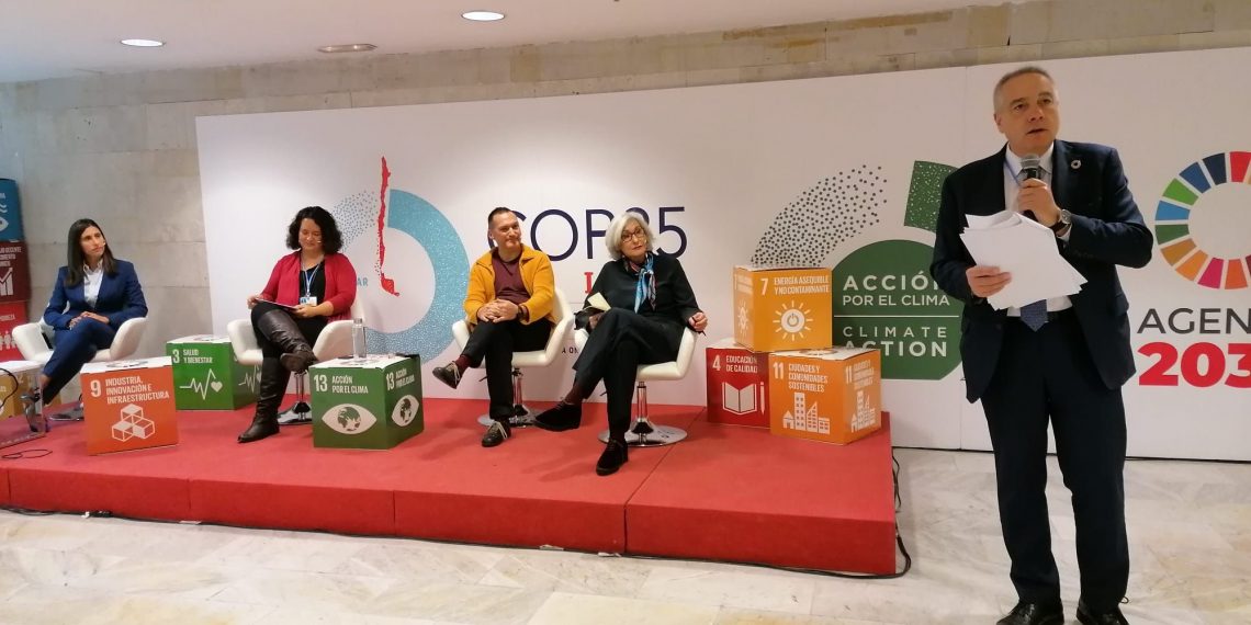Pere Navarro, delegado especial del Estado en el Consorci de la Zona Franca de Barcelona (CZFB), participó este miércoles en la Cumbre del Clima COP25, evento internacional que se celebra desde el pasado 2 de diciembre y hasta el 13 de diciembre en el recinto IFEMA, en Madrid.