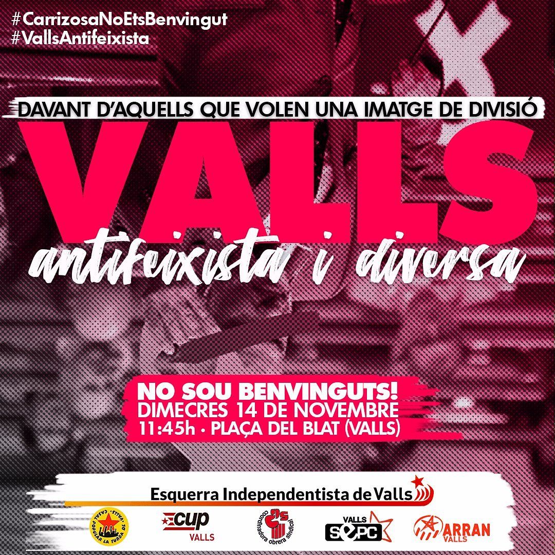 En este sentido Carlos Carrizosa ha asegurado en su cuenta de Twitter que, «ninguna amenaza de los intolerantes que se creen que las calles y las plazas son suyas nos va a parar. Mañana iremos a Valls a defender la dignidad y dar voz a todos los ciudadanos que votaron a Cs las pasadas elecciones«, ha señalado el portavoz parlamentario de Cs.