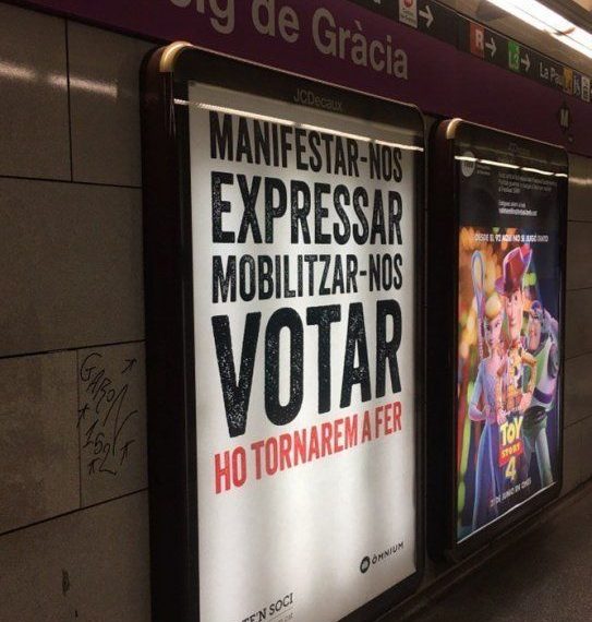 Estos días es fácil toparse por las calles de Cataluña con carteles de Òmnium donde desafían a España, asegurando que «Lo volveremos a hacer«, en referencia al intento de golpe de Estado perpetrado el 1 de octubre.
