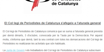 El Catalán El Colegio de Periodistas de Cataluña se apunta a la «huelga de país» lunes, 2 de octubre de 2017