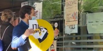 Sociedad Un grupo de ciudadanos limpia la propaganda separatista de la ‘conselleria’ de Interior sábado, 9 de abril de 2022
