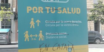 Sociedad Unos radicales separatistas vandalizan unos carteles del Ayuntamiento de L’Hospitalet por estar en castellano y catalán sábado, 30 de mayo de 2020
