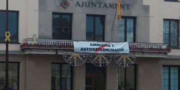 Política El Ayuntamiento de La Garriga (Barcelona) exhibe propaganda secesionista en la fachada viernes, 15 de enero de 2021